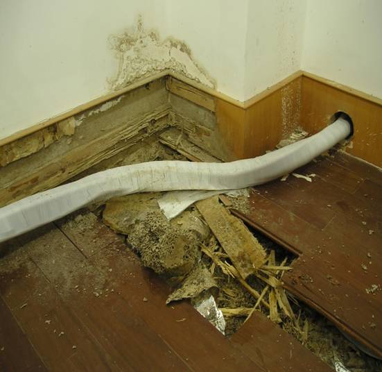 案例:2015年,漳州市某賓館7樓木地板發(fā)生白蟻危害。經(jīng)專業(yè)人員檢查發(fā)現(xiàn),這些白蟻來源于賓館外一棵行道樹中,通過地下管道和建筑物沉降縫隙的間隙蔓延進入賓館內(nèi)部危害。